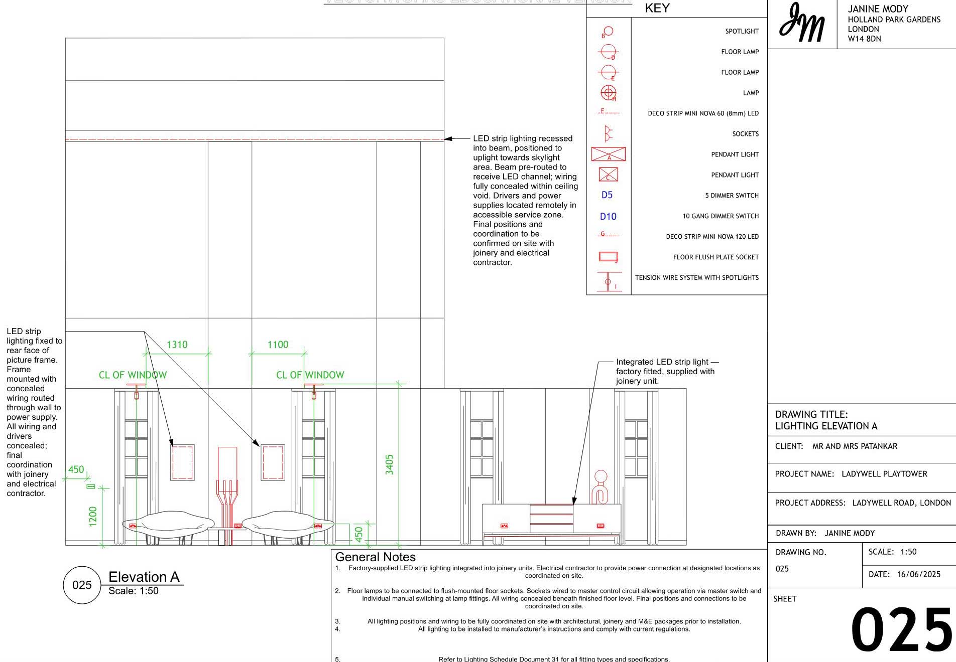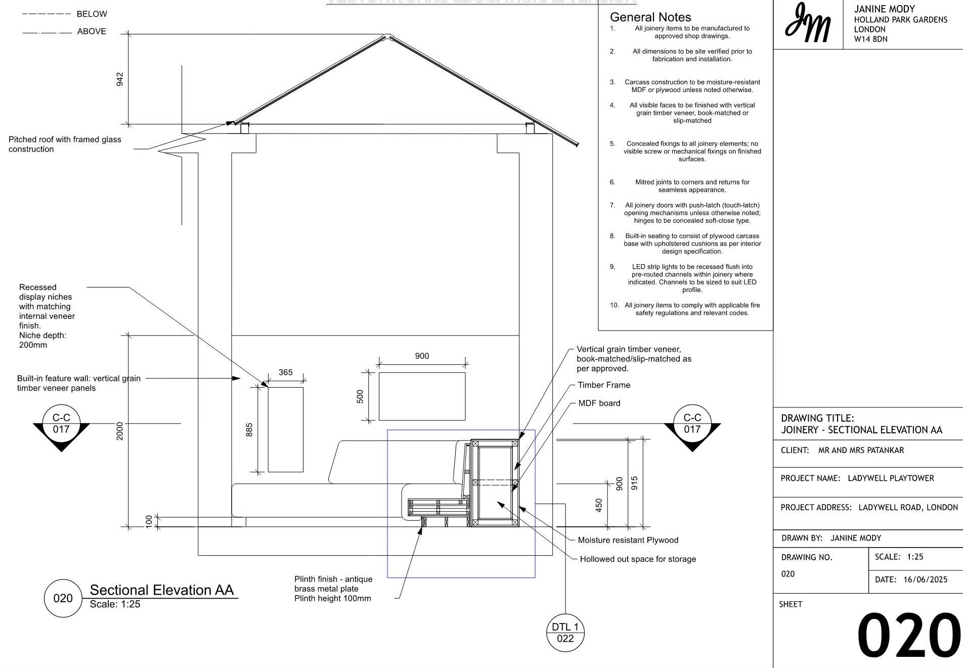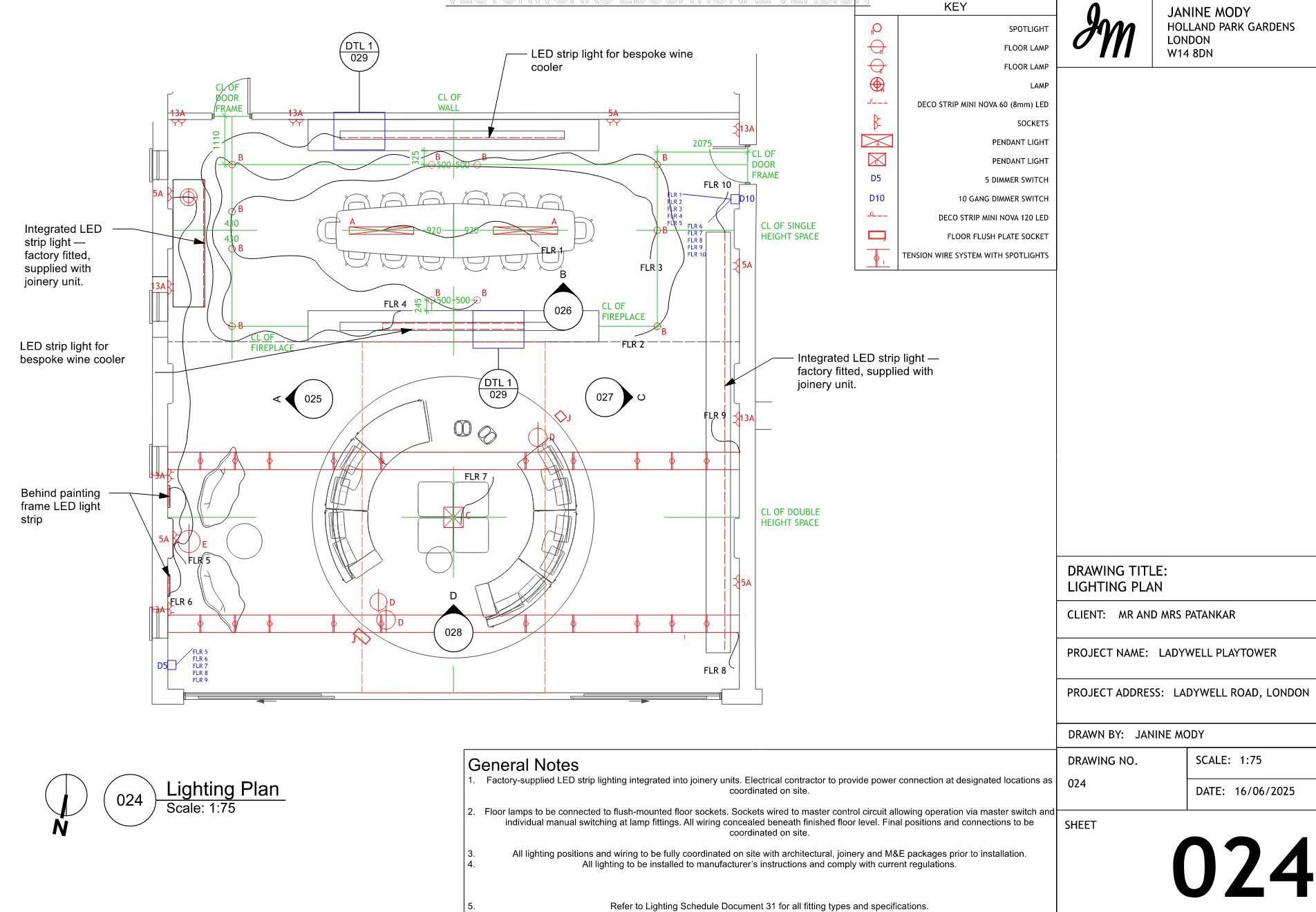 A curated selection of technical drawings is showcased here, including lighting, plumbing, and joinery details. Full drawing packages are available upon request.