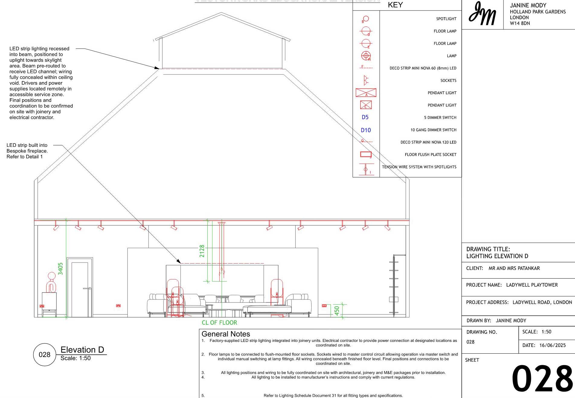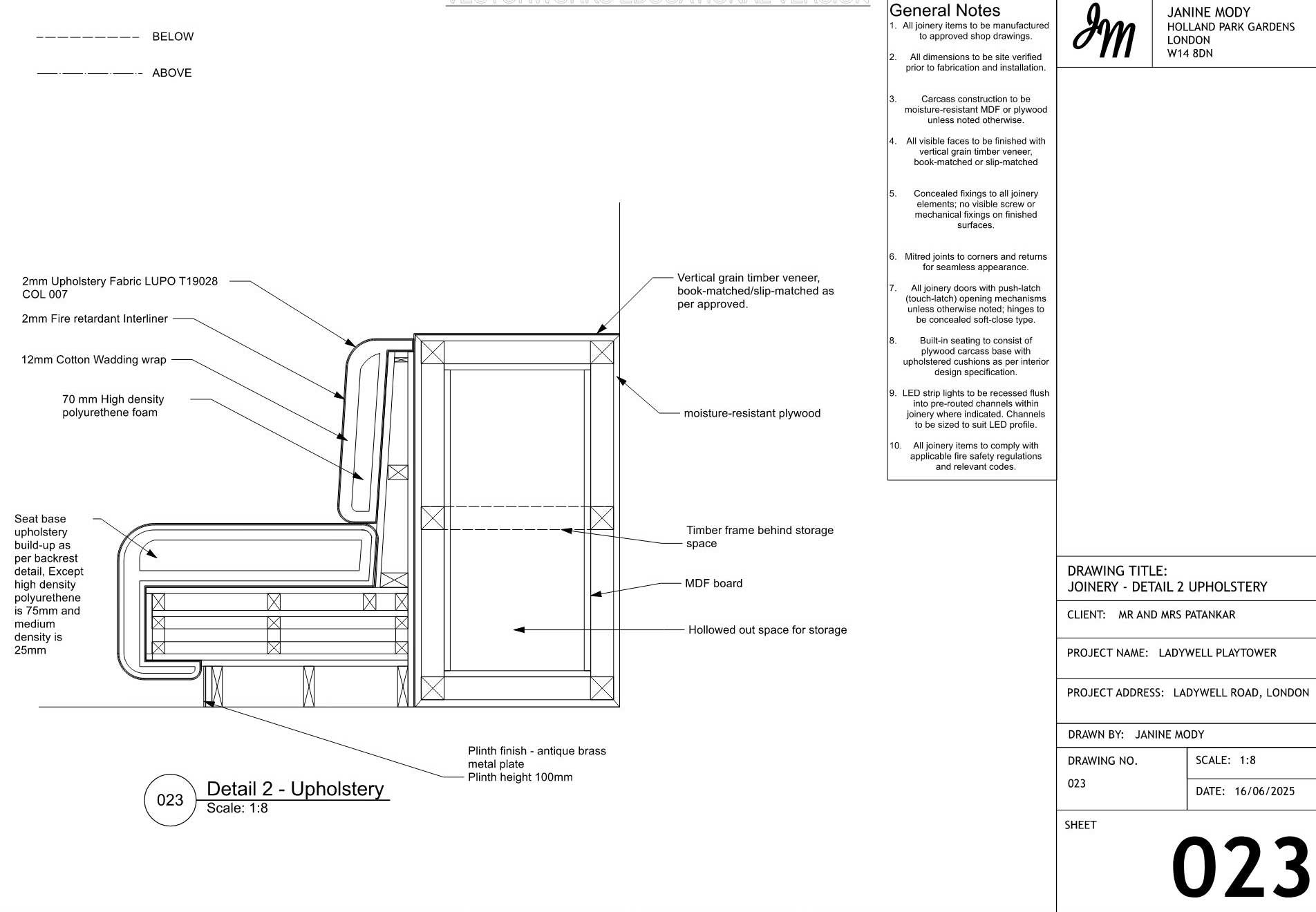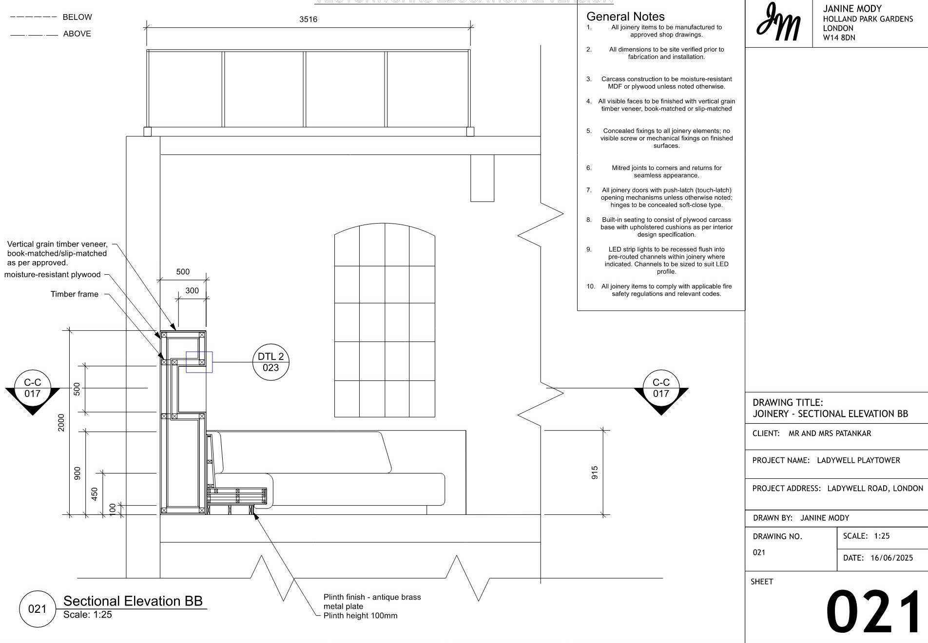A curated selection of technical drawings is showcased here, including lighting, plumbing, and joinery details. Full drawing packages are available upon request.
